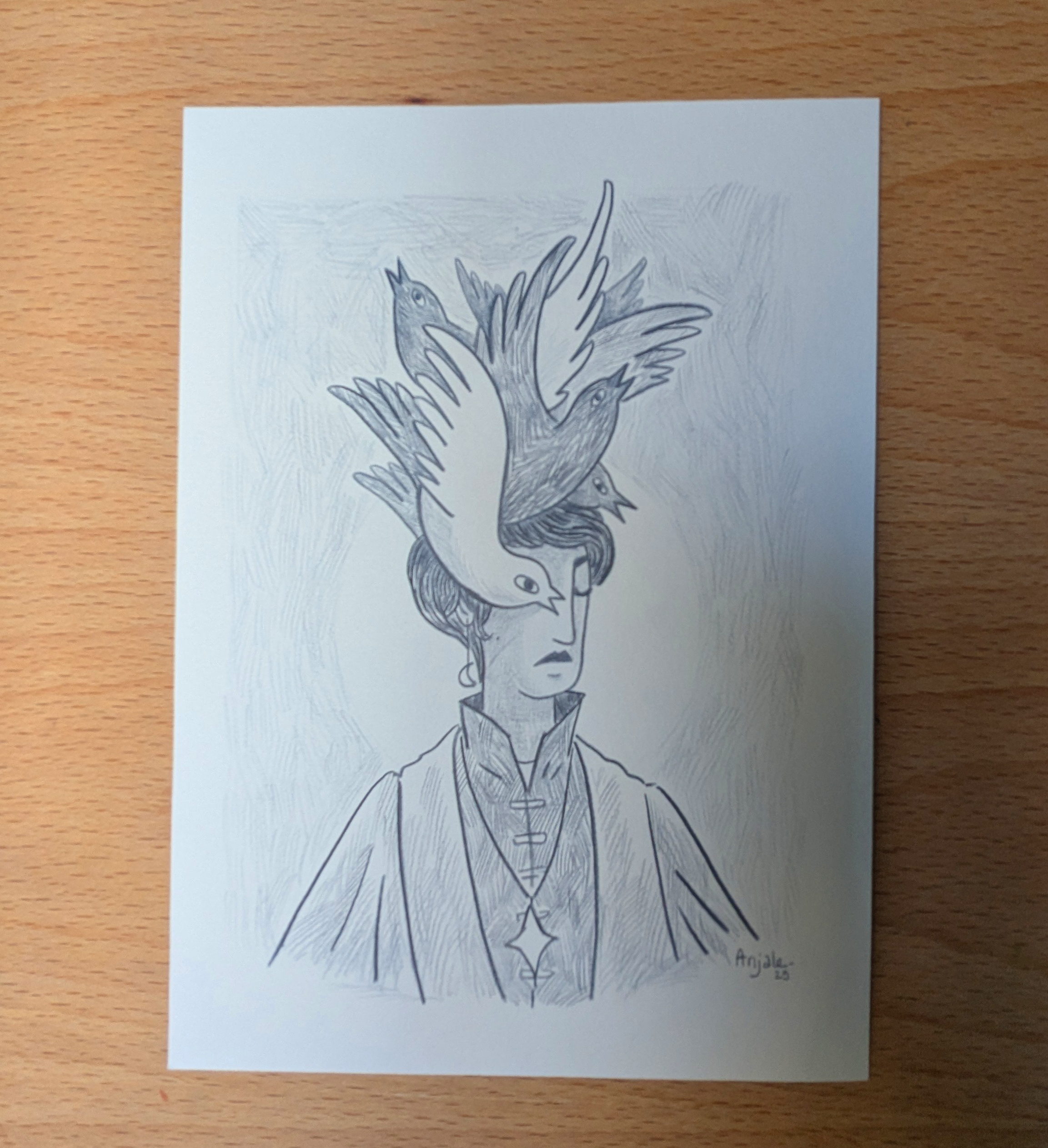 Originaux Formats divers, voir en description.Pour passer commande, un petit mail à anjale@live.f ou sur instagram @gaelanjale avec le nom de l’illustration. (+ 3,28 € de frais de port)Paiement par paypal. case en tôle couleur60 € – A5 21x15cmBird25 € – A5 21x15cmRegard30 € – 15x15cmAngry witch25€ – 15x15cmWindow25€ – 15x15cmPoisson25€ – 14x14cmCiel25€ – 15x15cmAnge25€ – 15×15 cmRacines25€ – 15x15cmEscalier25 € 15x15cmCiré jaune22€ – 14x14cmEstival20€- 13x19cmBoxe20€ 13x13cmWolf girl22 € – 16x16cmPortrait22€ – 16x10cmWild bird22 € – 13,5×13,5 €Lecture22€ – 14x14cmPlant Guy15 € – 14x14cmCoccinelle20€ – 17x17cmSorcière fantôme20 € – 11x19cm